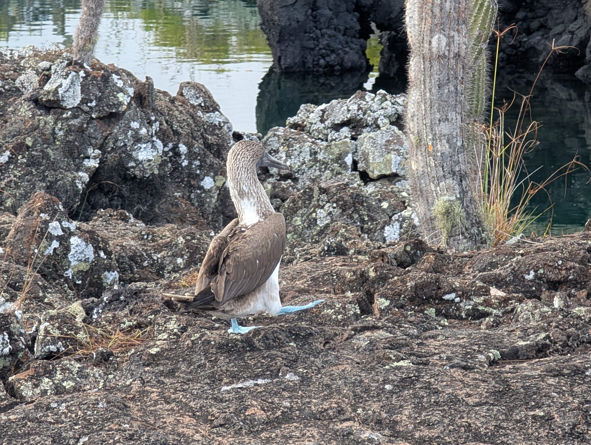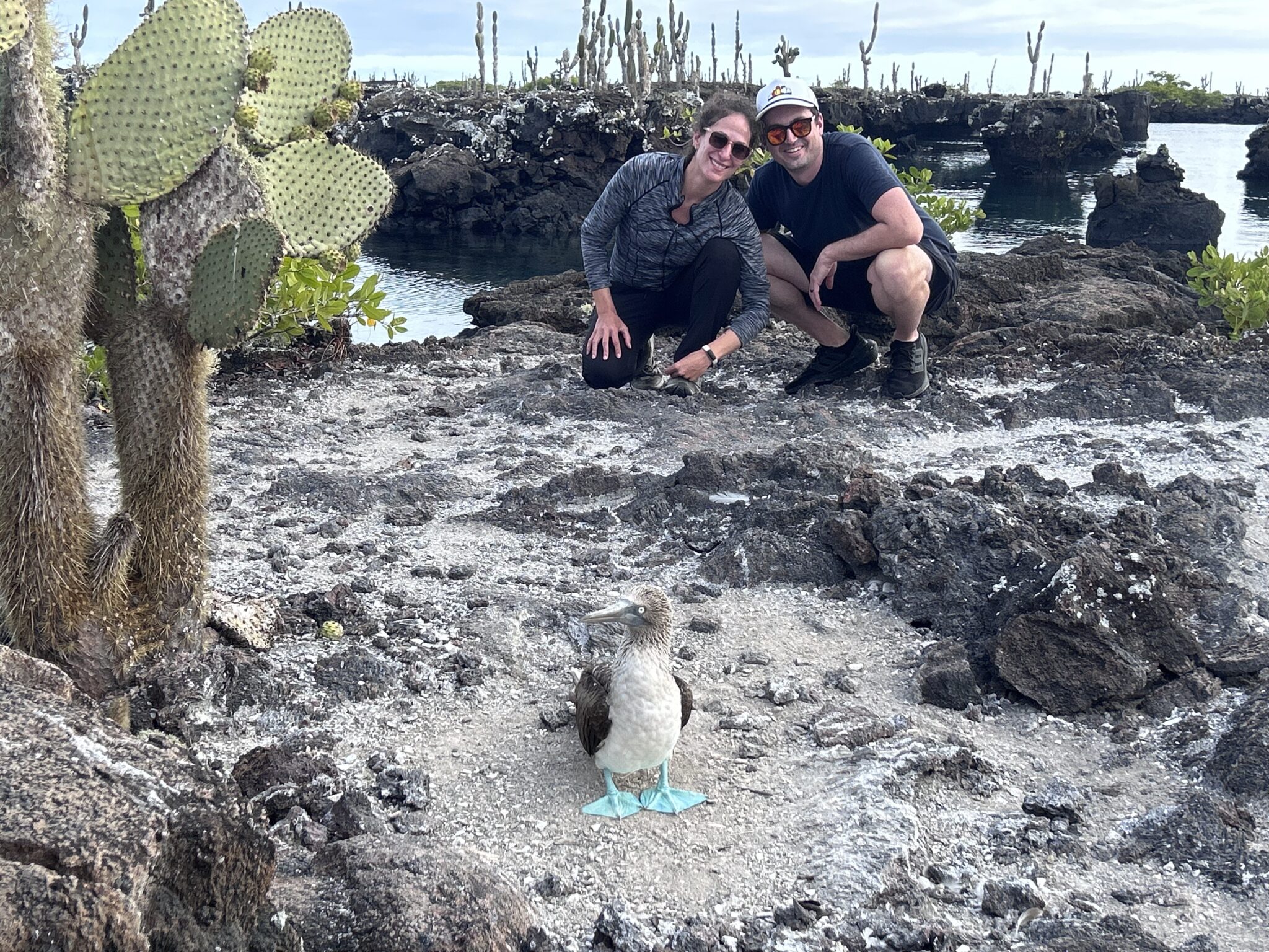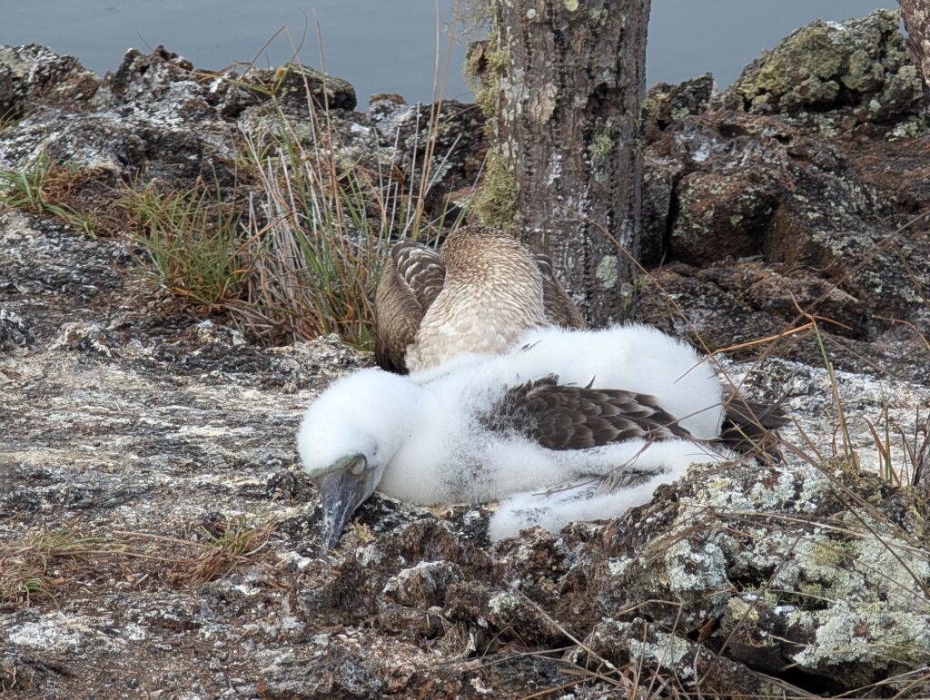On the land tour of los túneles, we had the most amazing experience seeing the blue footed booby up close. We saw baby boobies that were approx. 2 months and 4 months old and were able to see the mating dance (you can hear our guide discussing it in the videos). We watched different males land and start calling and dancing to attract a mate. They’re not afraid of humans, so we were able to observe and get feet away from them without scaring them away or interrupting them.