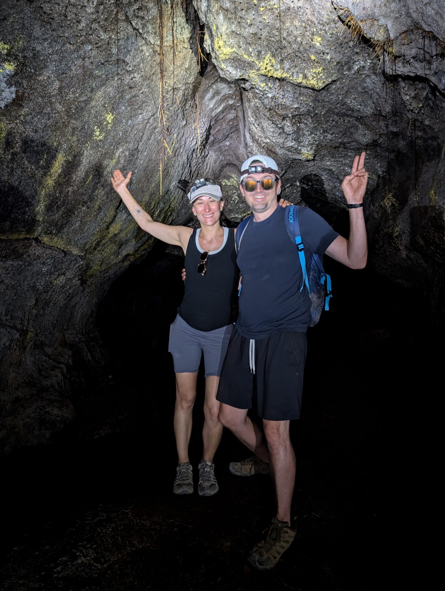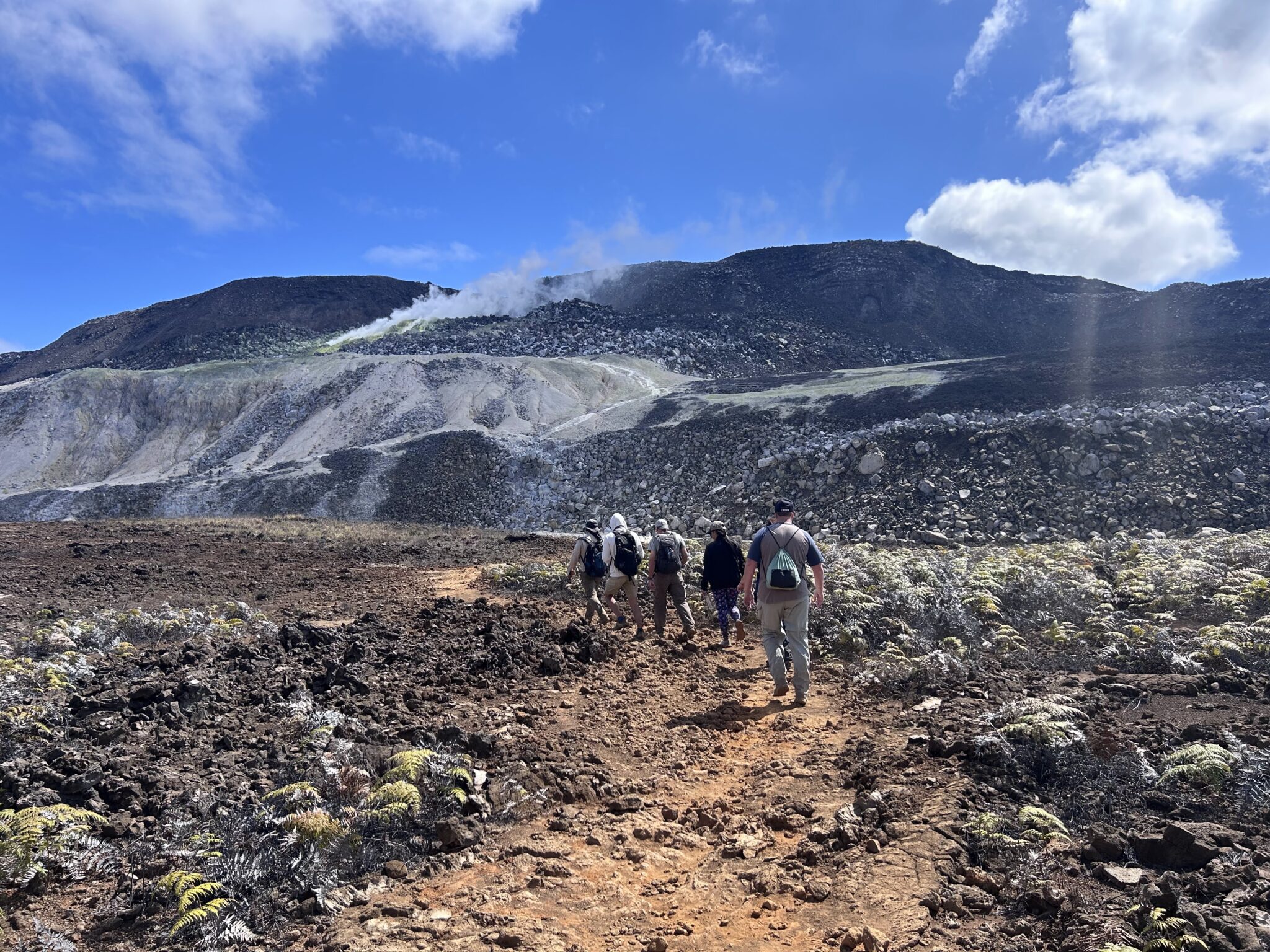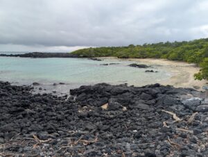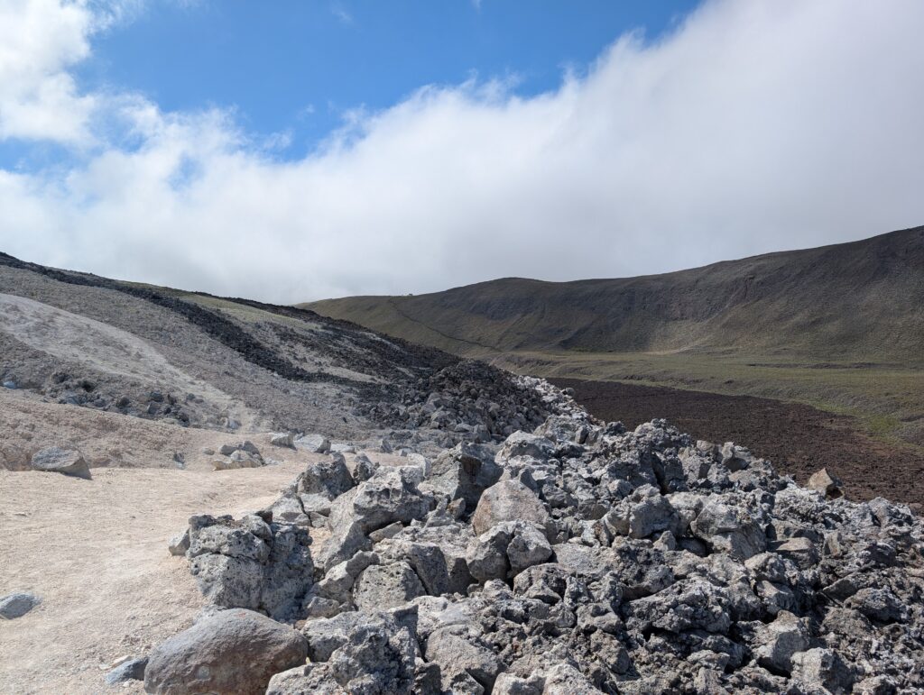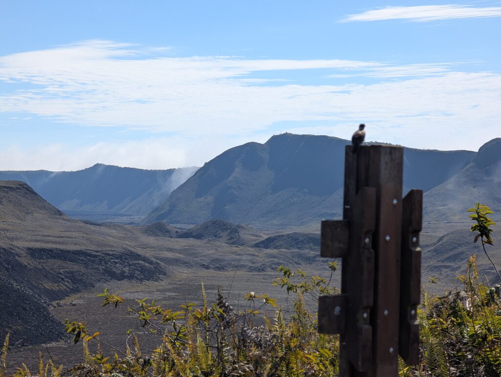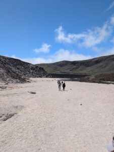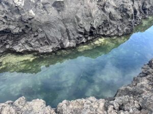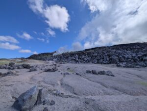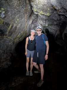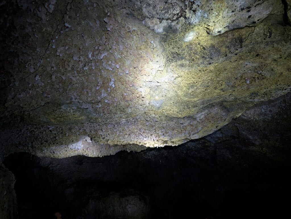 We visited a lava cave, formed by flowing magma from an eruption, after seeing the caldera. The cave was surrounded by avocado trees, which are invasive to the area and are in the process of being removed and replaced with native species. We could see the roots of the avocado trees growing into the cave.