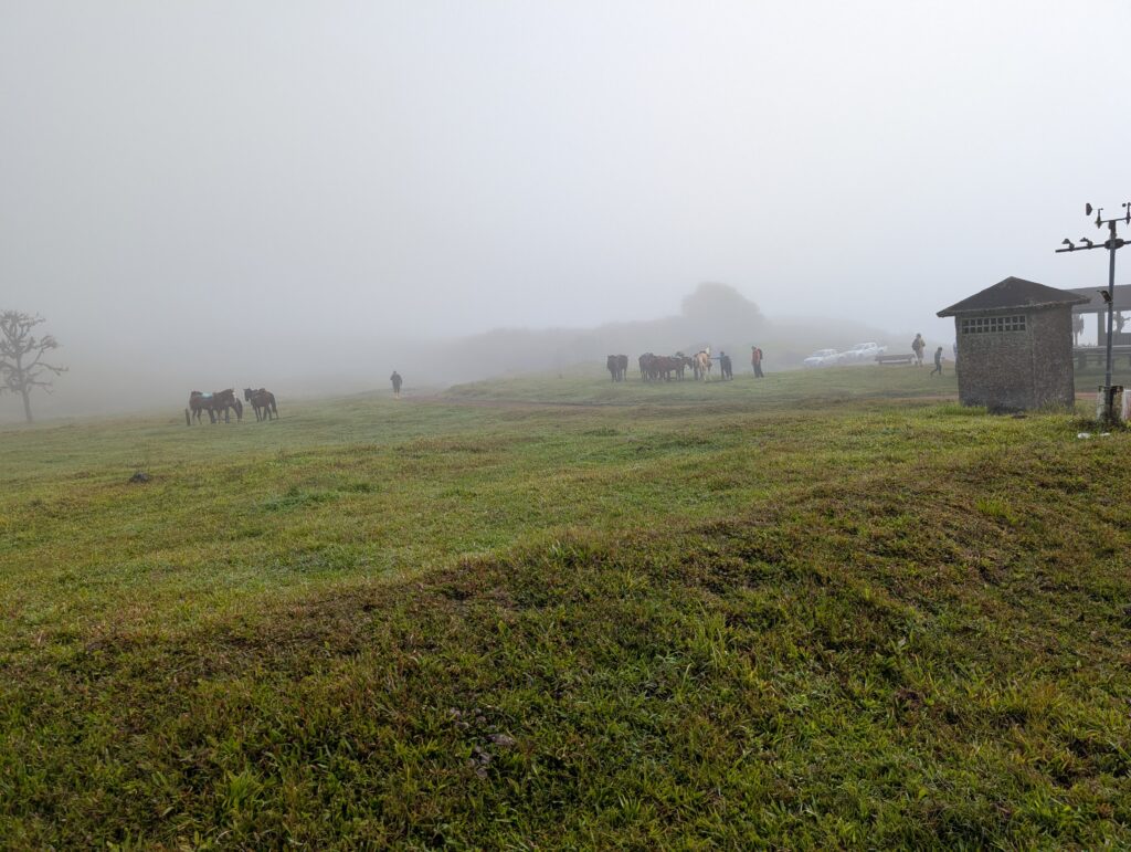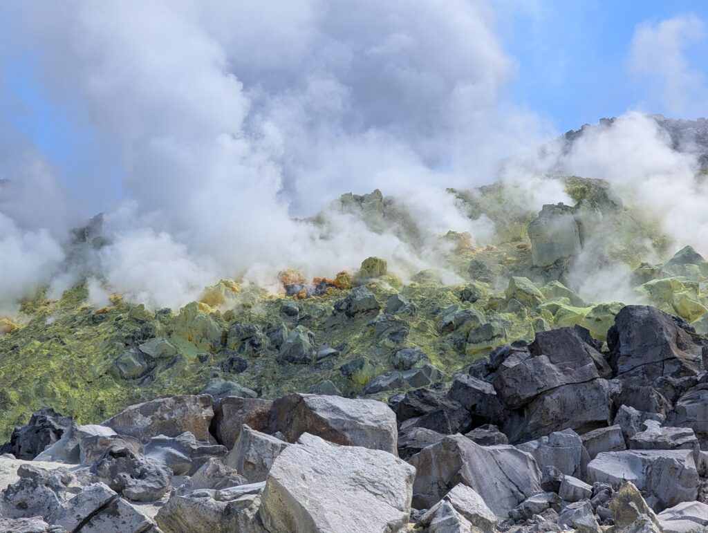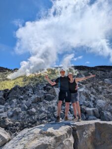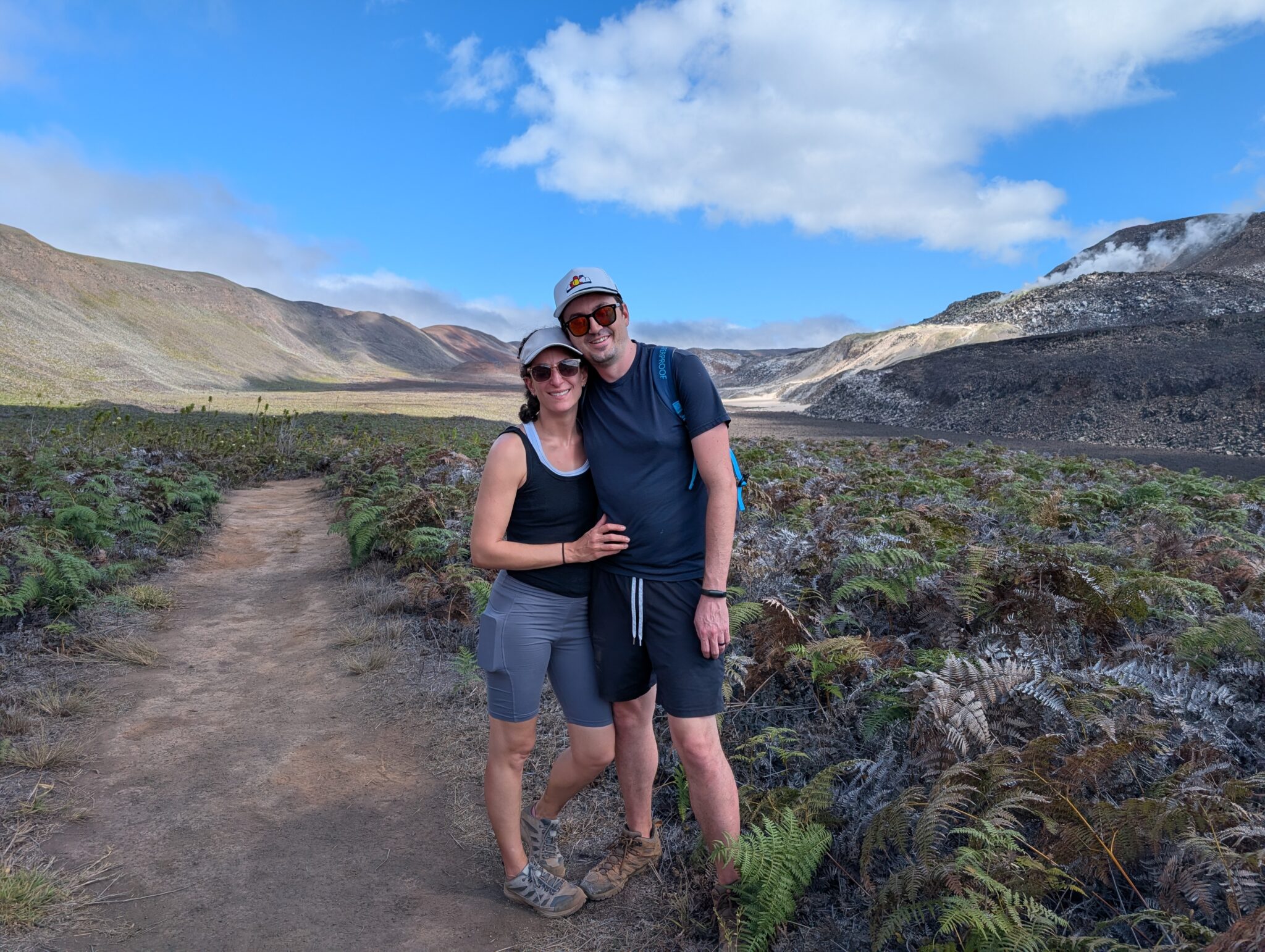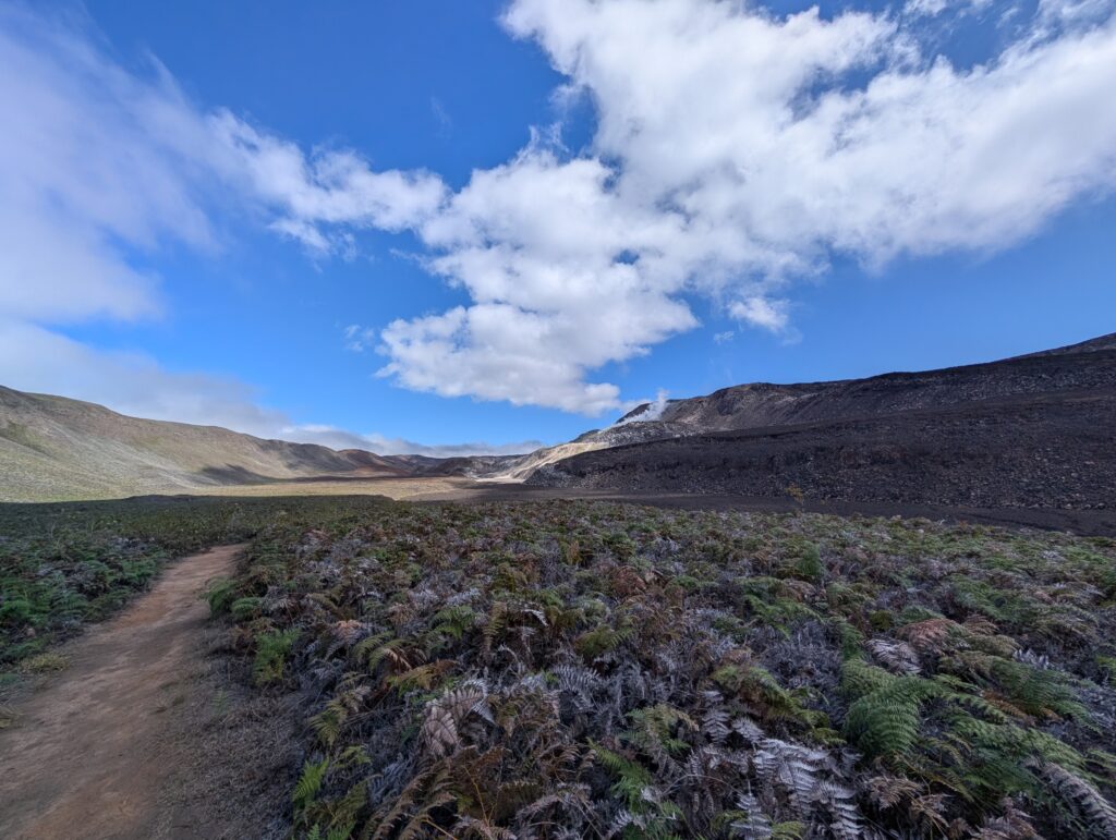 Our final day of excursions started with the shorter hike to the Sierra Negra caldera, which is one of the largest active calderas at nearly 10 km diameter. We walked into the caldera and the sulphur mines, where there were some pockets where you could hold your hand over and feel the heat radiating (surely just fine for our health to be radiated for a second). Inside the vents, it is about 300 degrees Celsius (~575 Fahrenheit). We could also see the sulfur gas coming out of the largest vent (from a safe distance, of course).