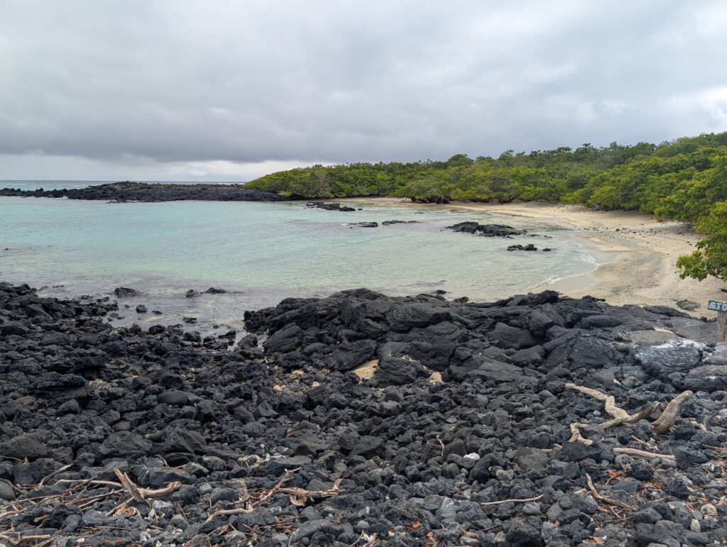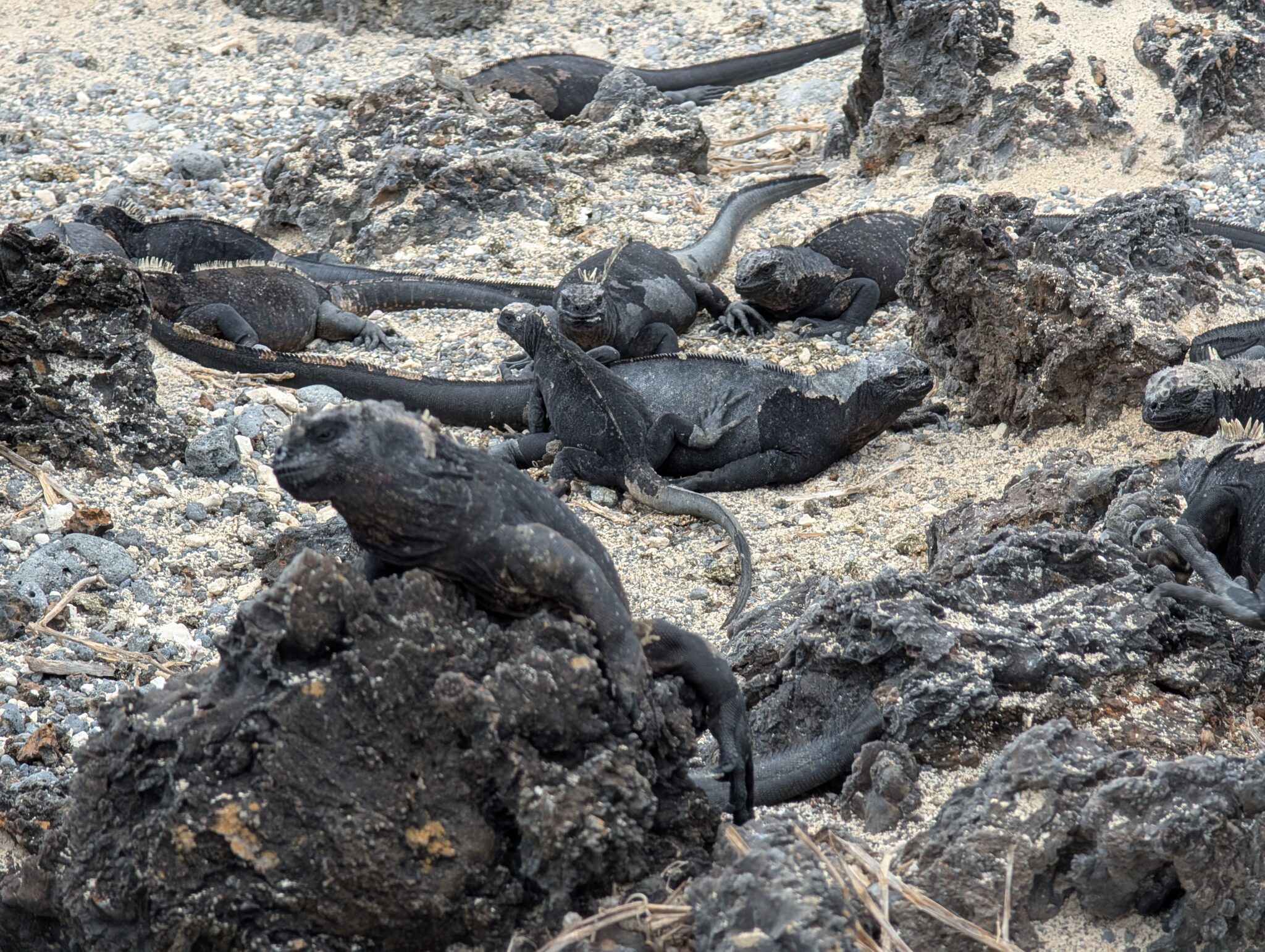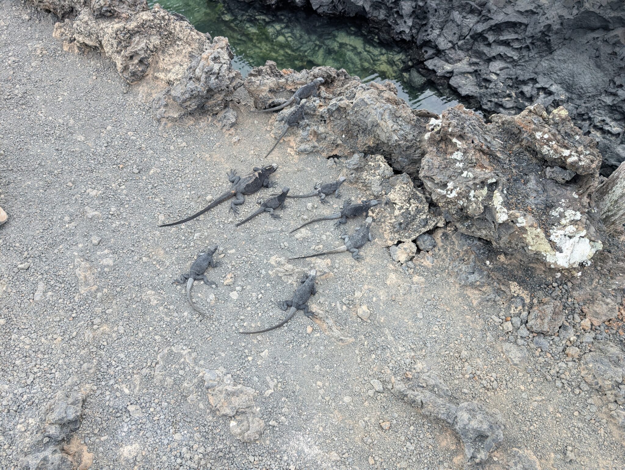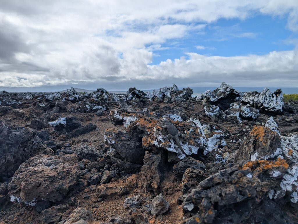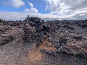 Our final excursion of the trip was a land and snorkeling tour of las tintoreras, which are land formations and canals made from lava flow named for the white-tipped reef sharks who take residence to nap in the canals. Apparently the sharks sleep there for the heat they can feel from the magma below. We had the joy of seeing more blue-footed boobies, eagle rays, and the sole Galápagos penguin residing on Isabela Island at the time we were there. On the land tour, we saw a marine iguana nesting ground and groups of sleeping white tipped reef sharks.
