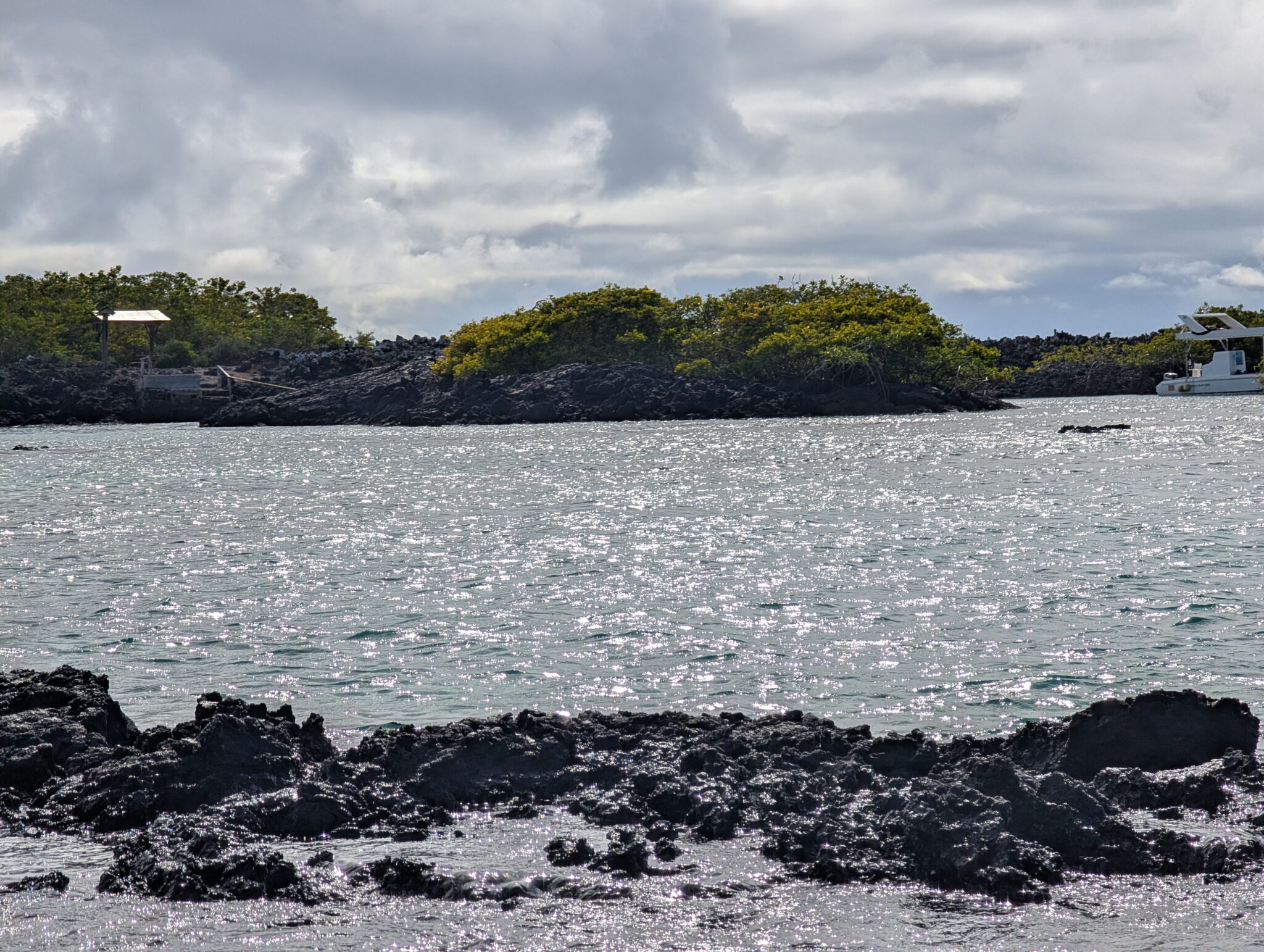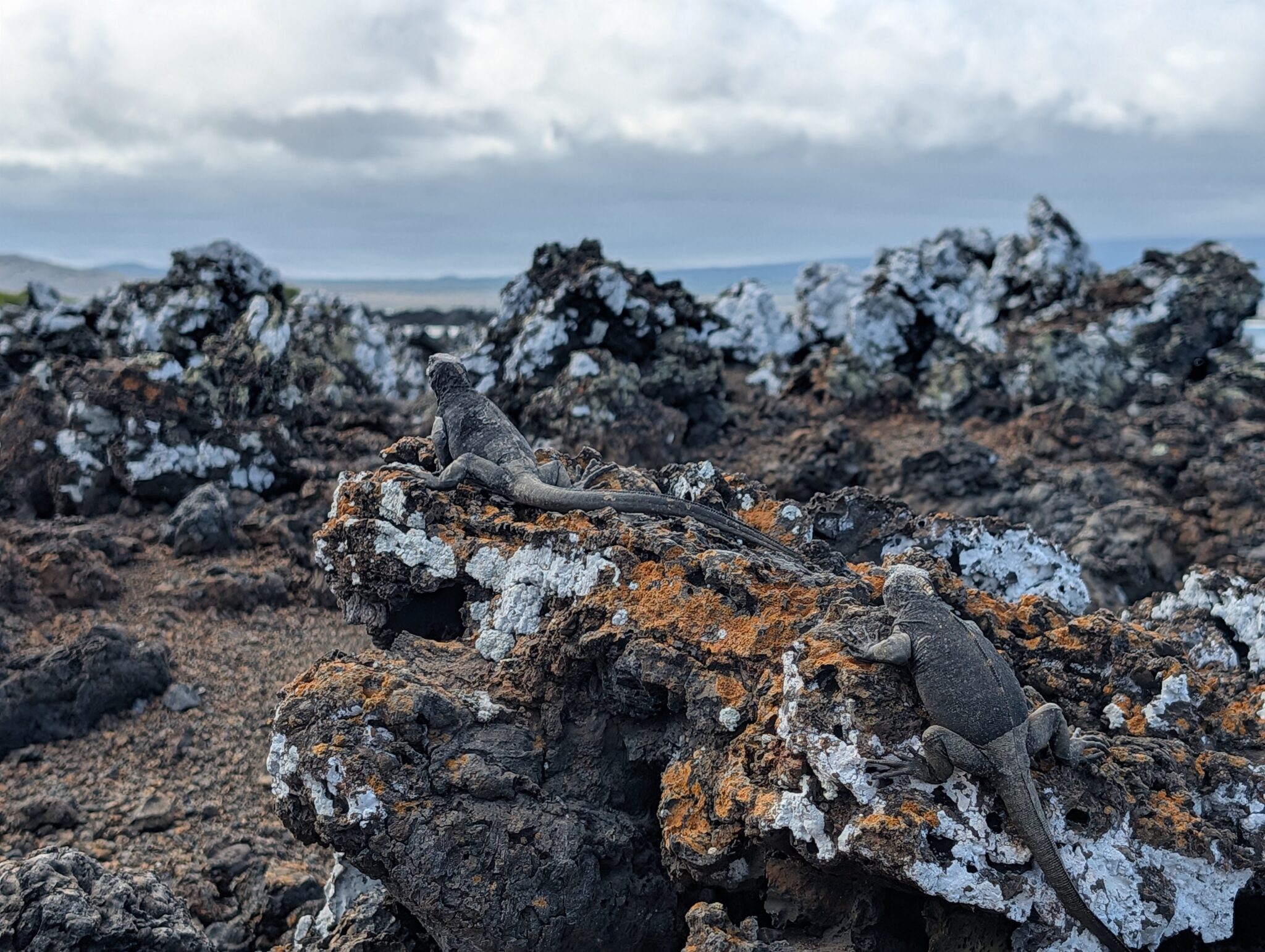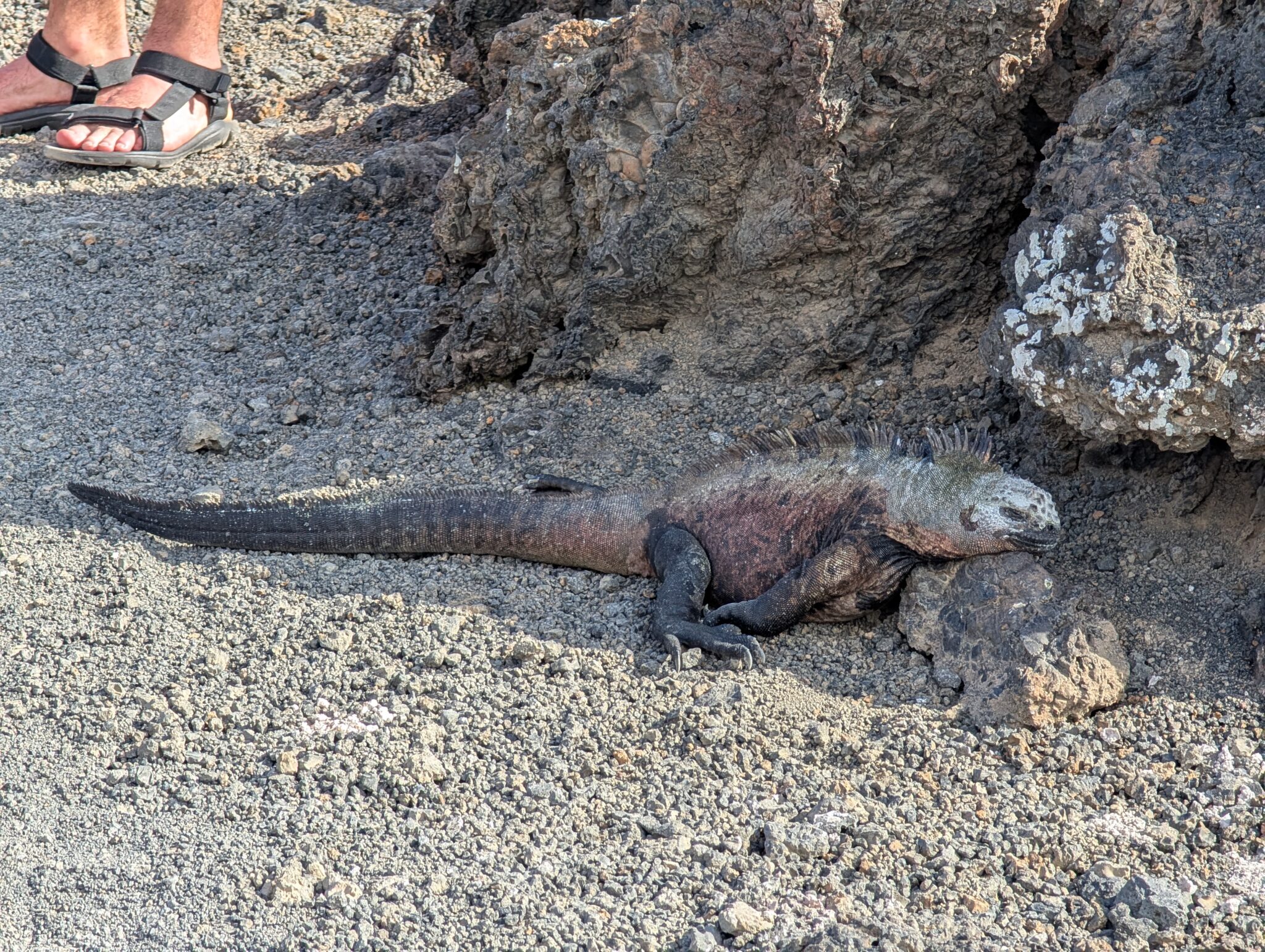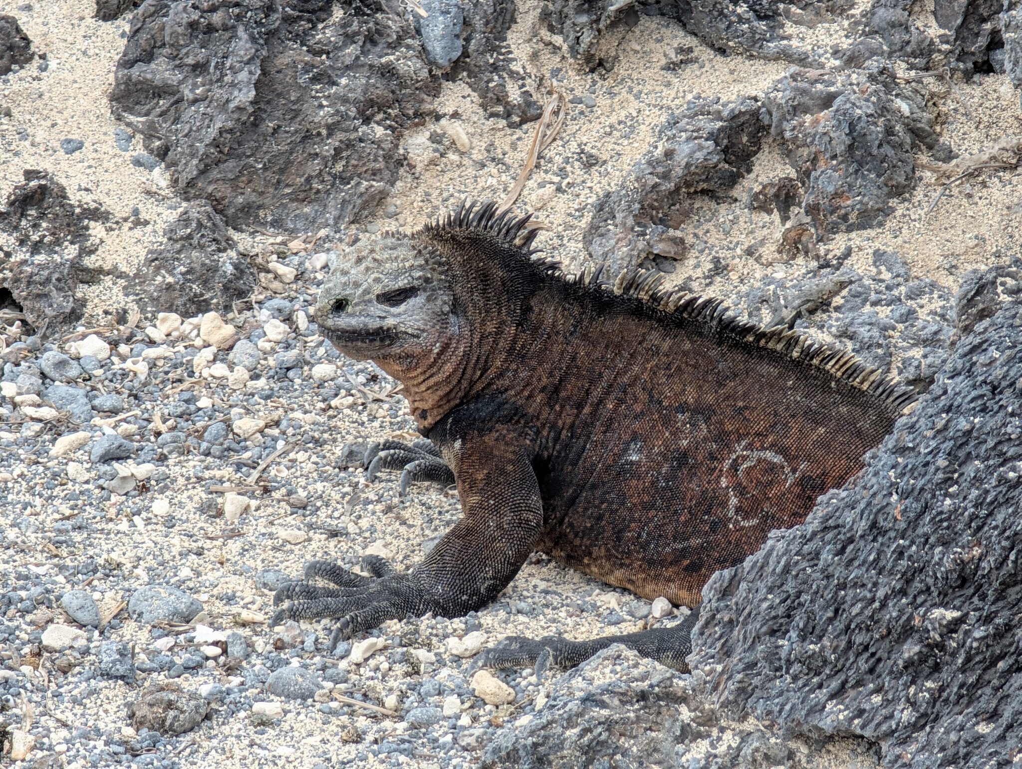 Our final excursion of the trip was a land and snorkeling tour of las tintoreras, which are land formations and canals made from lava flow named for the white-tipped reef sharks who take residence to nap in the canals. Apparently the sharks sleep there for the heat they can feel from the magma below. We had the joy of seeing more blue-footed boobies, eagle rays, and the sole Galápagos penguin residing on Isabela Island at the time we were there. On the land tour, we saw a marine iguana nesting ground and groups of sleeping white tipped reef sharks.