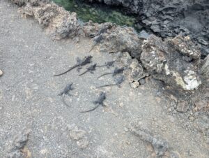 Today’s tour concluded with snorkeling las tintoreras. This was our most challenging snorkeling experience of the trip, likely as much because we were already tired from our hike and days of adventuring leading up to it as it was due to the more challenging currents. It was well worth it to swim with sea turtles, eagle rays, and to catch sight of many blue starfish.