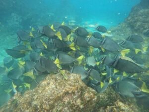 - Schools of parrot fish and surgeon fish