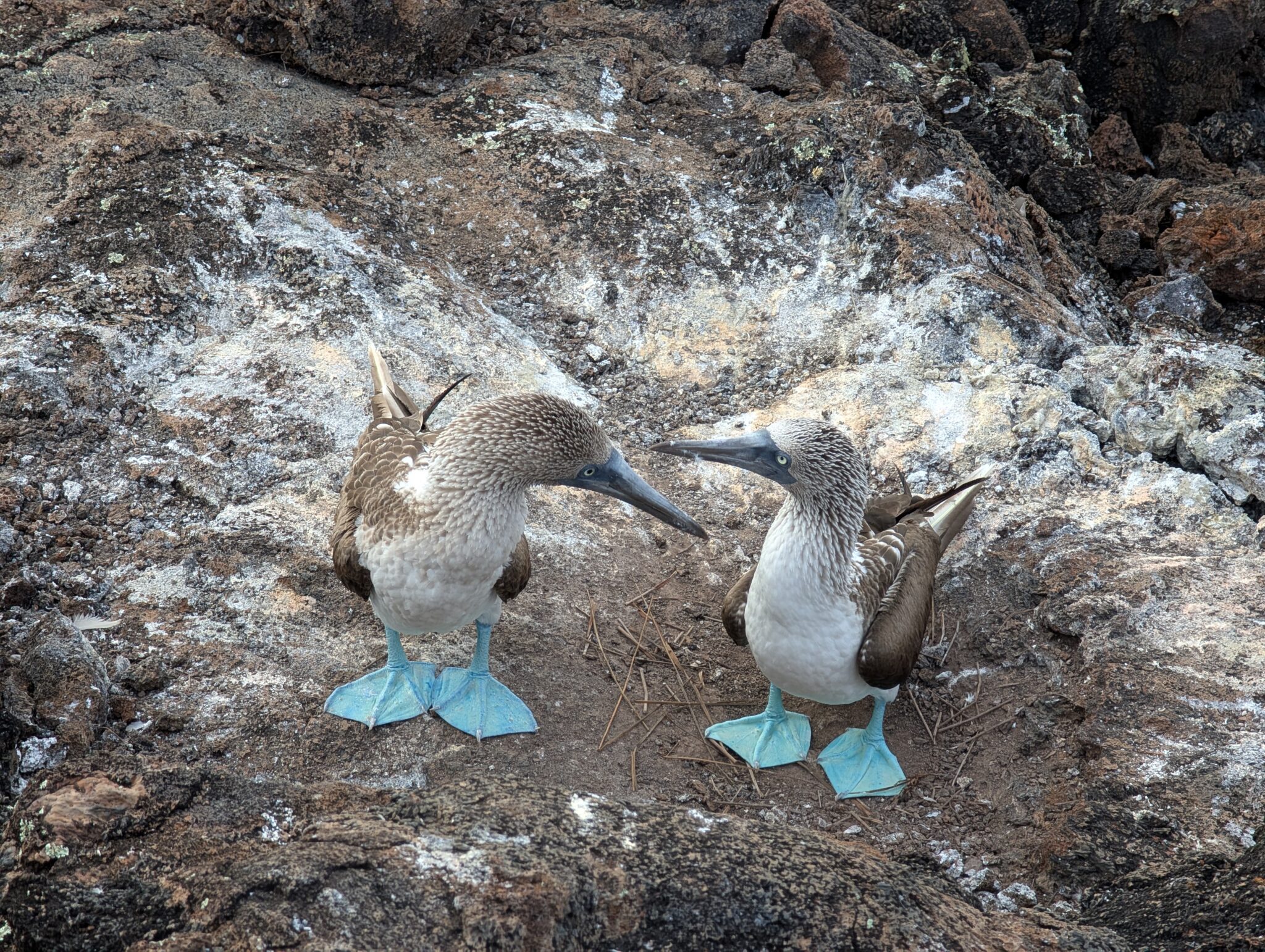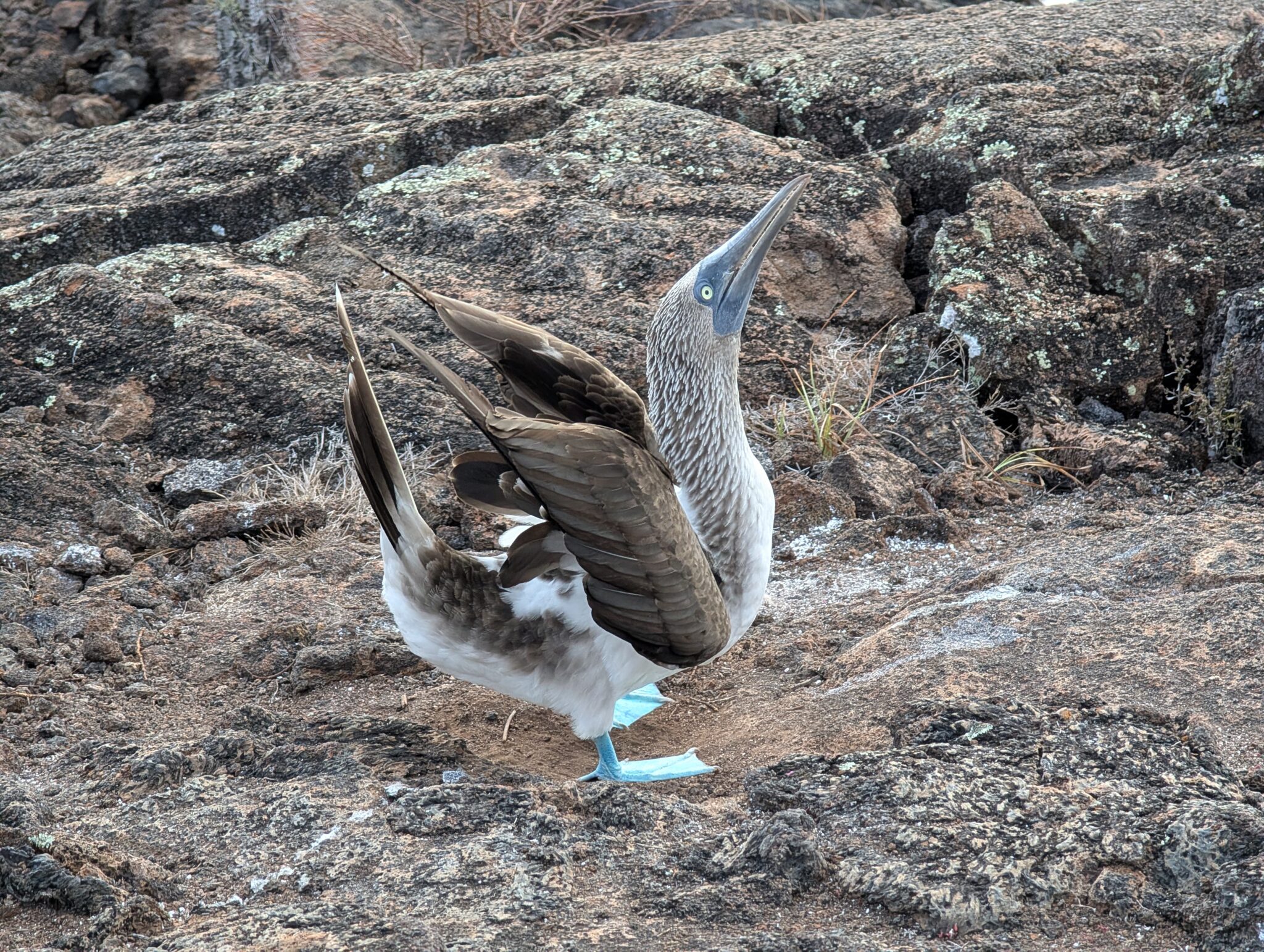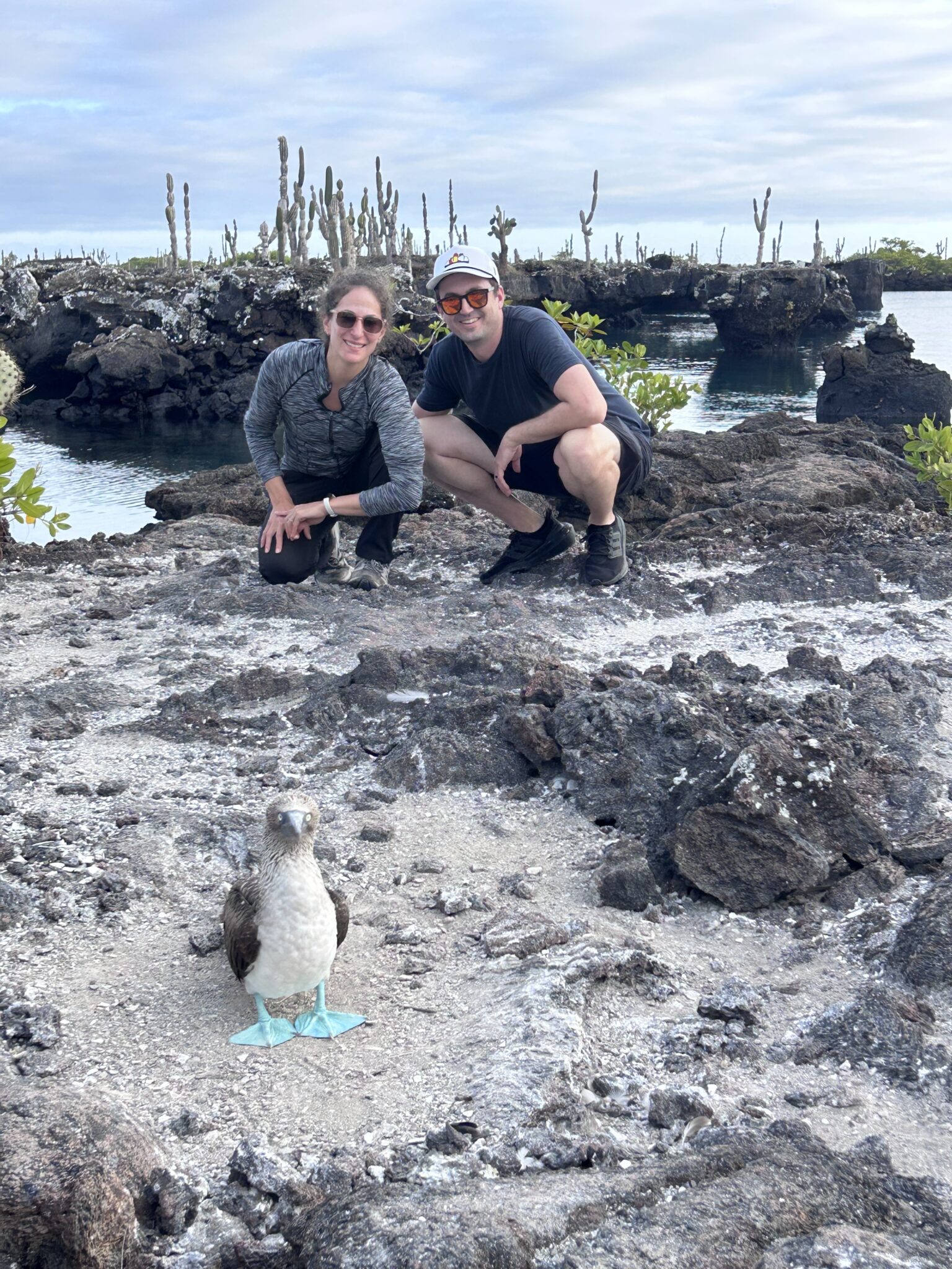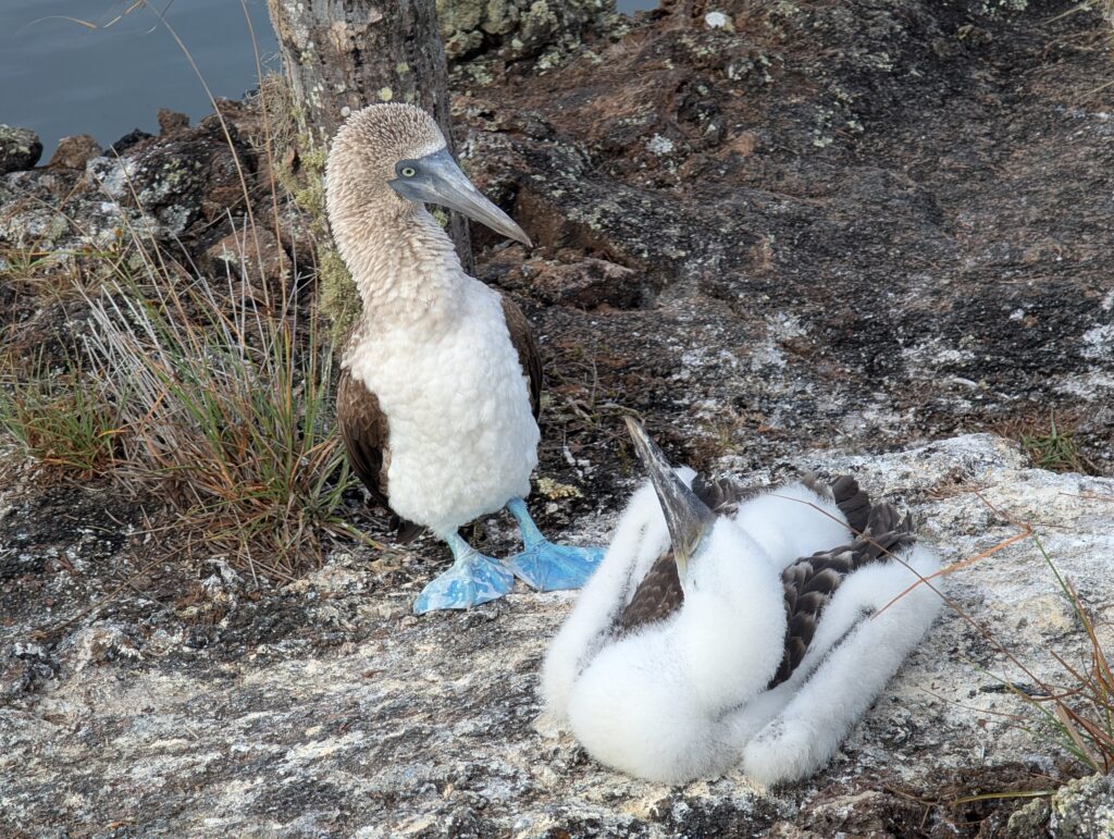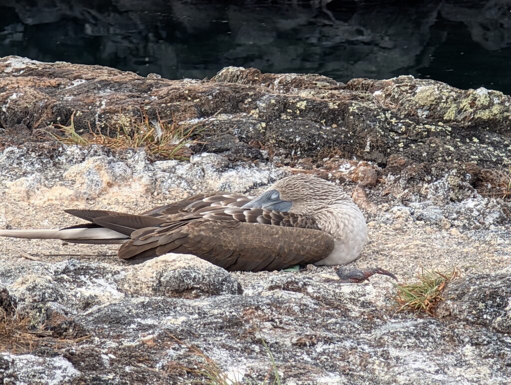 On the land tour of los túneles, we had the most amazing experience seeing the blue footed booby up close. We saw baby boobies that were approx. 2 months and 4 months old and were able to see the mating dance (you can hear our guide discussing it in the videos). We watched different males land and start calling and dancing to attract a mate. They’re not afraid of humans, so we were able to observe and get feet away from them without scaring them away or interrupting them.