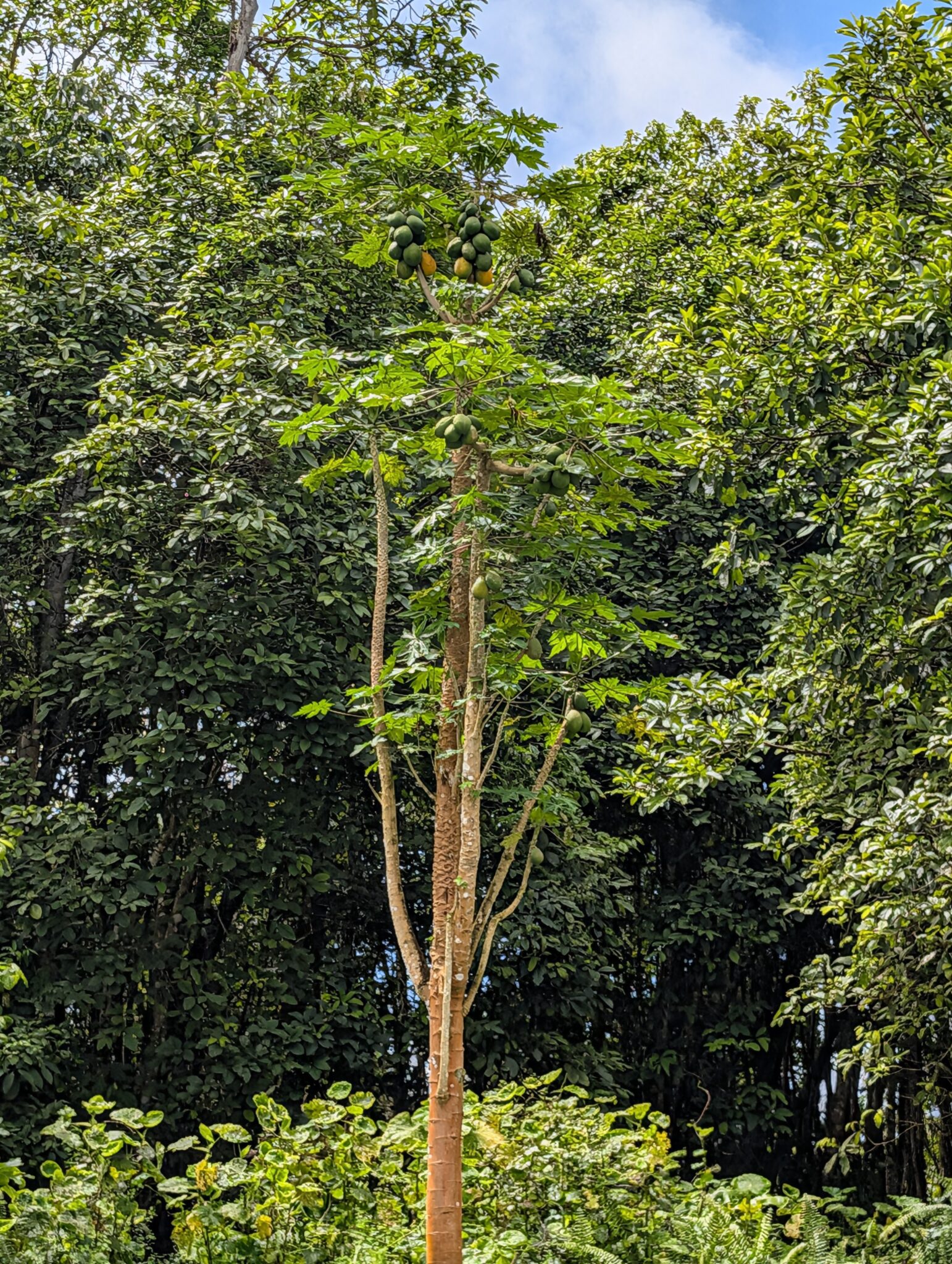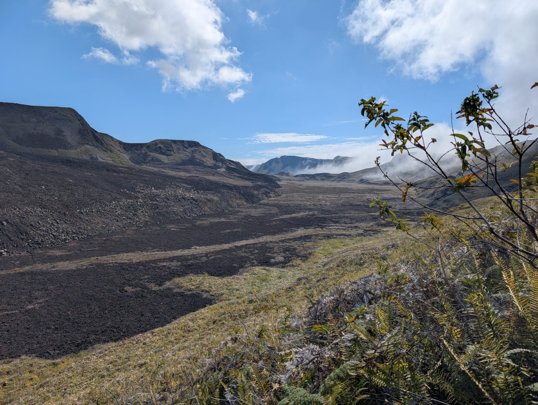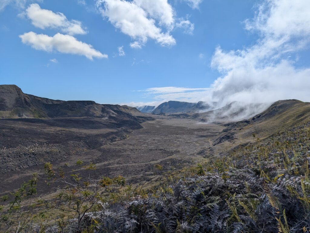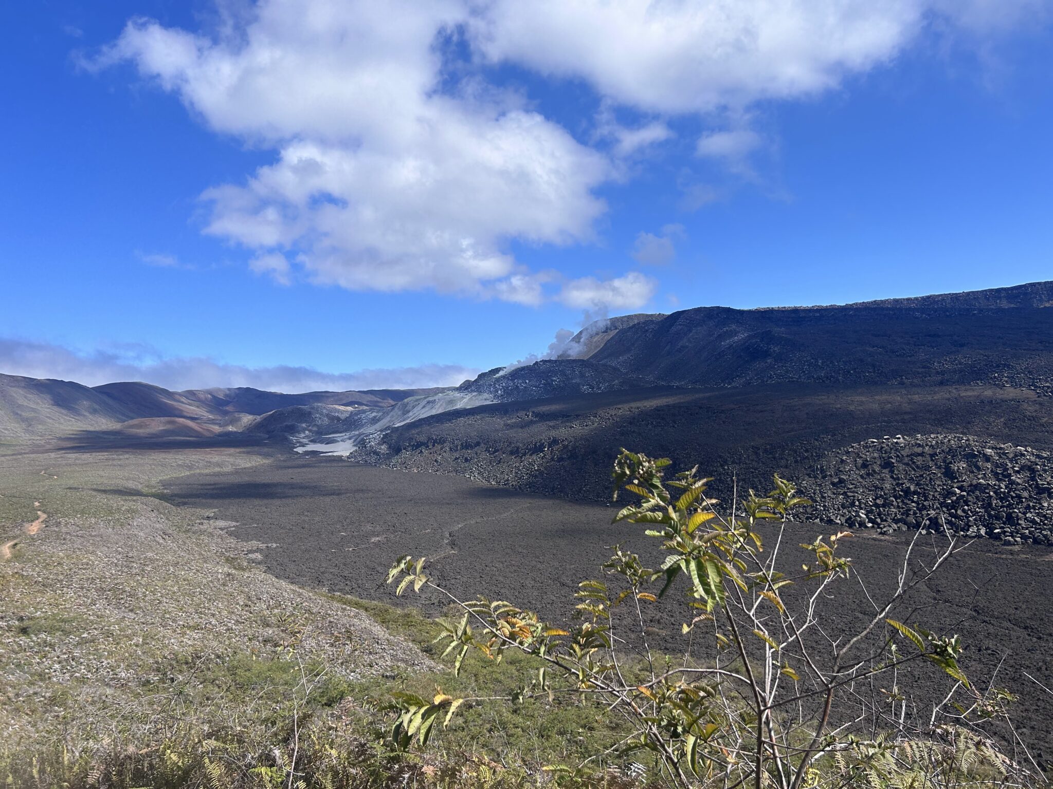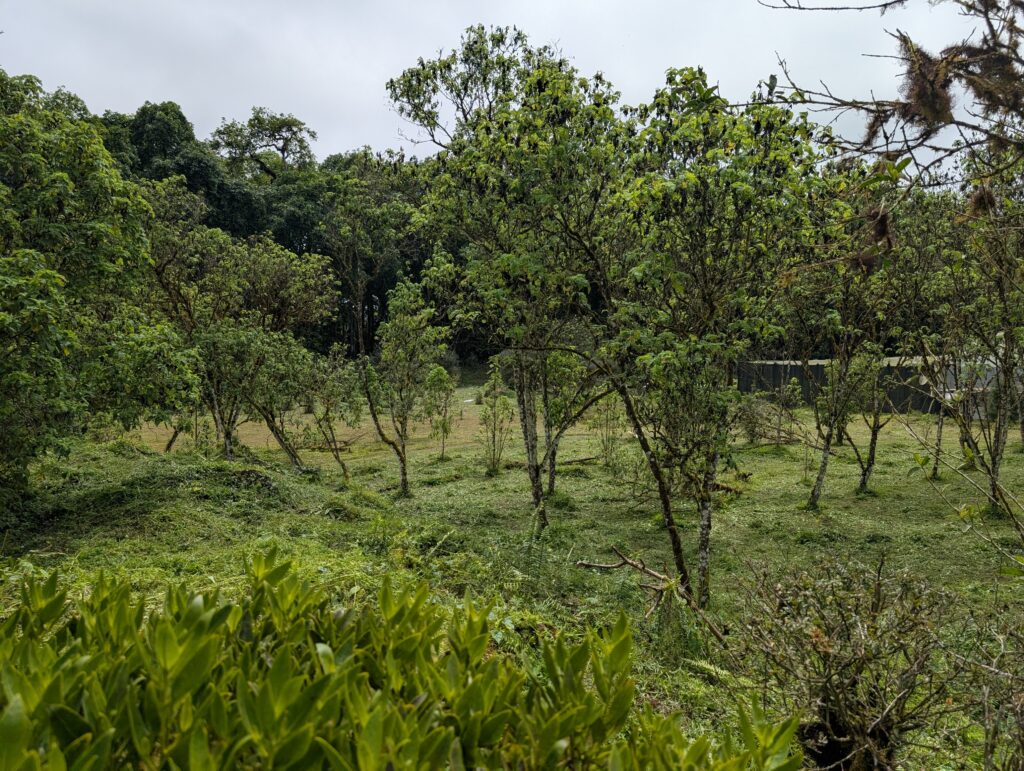 We visited a lava cave, formed by flowing magma from an eruption, after seeing the caldera. The cave was surrounded by avocado trees, which are invasive to the area and are in the process of being removed and replaced with native species. We could see the roots of the avocado trees growing into the cave.