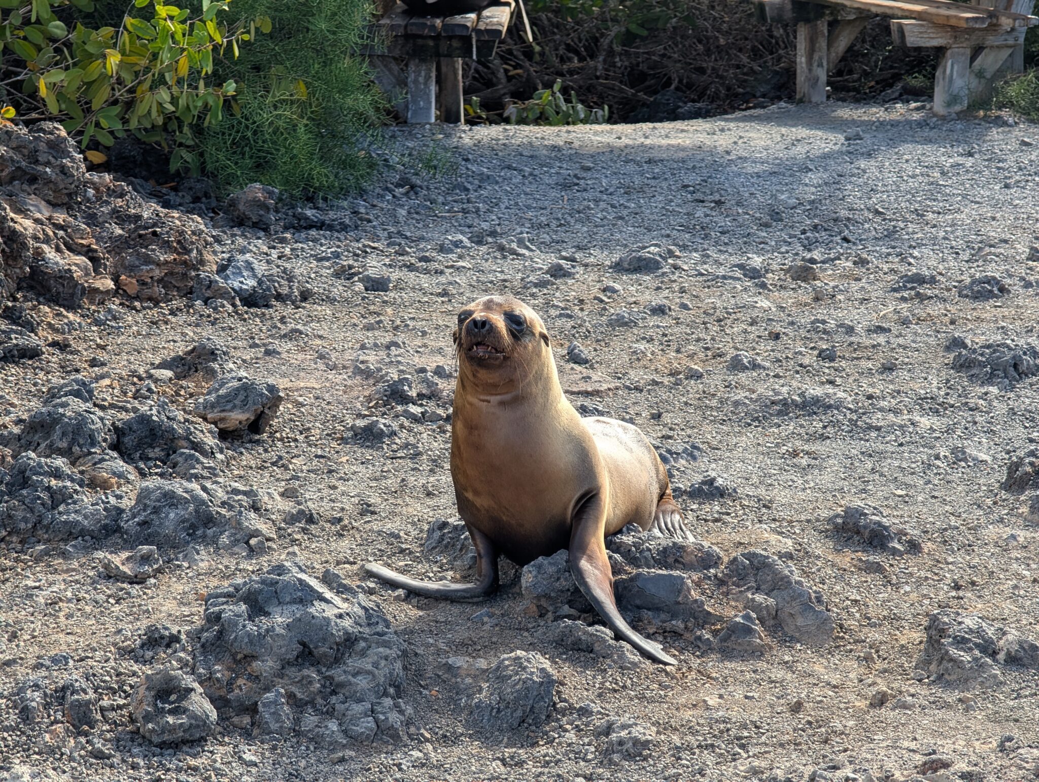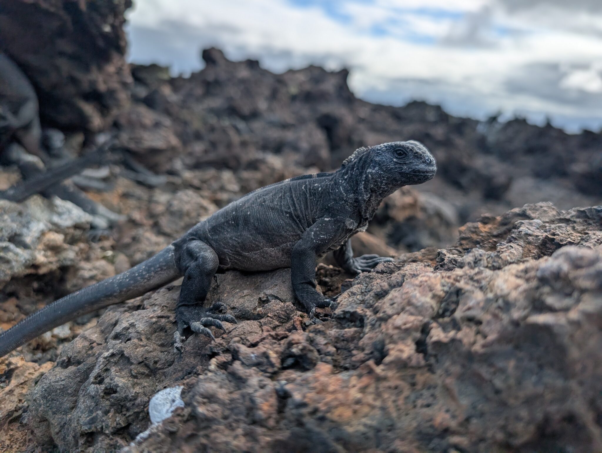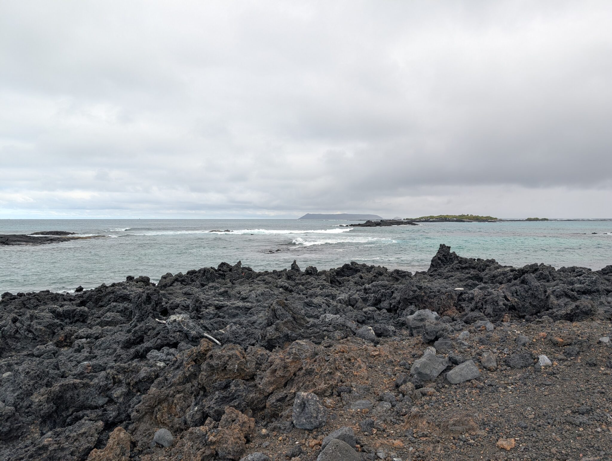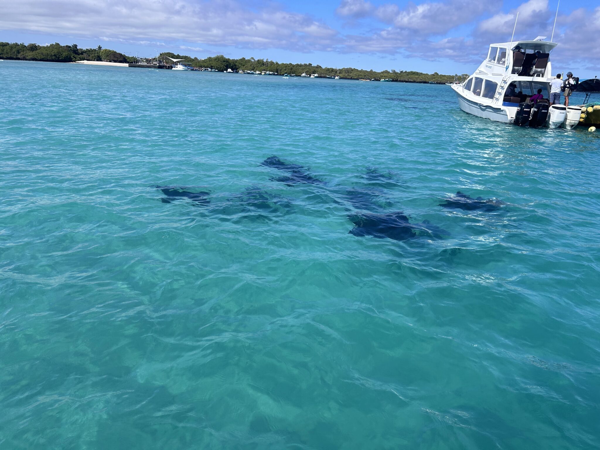 Our final excursion of the trip was a land and snorkeling tour of las tintoreras, which are land formations and canals made from lava flow named for the white-tipped reef sharks who take residence to nap in the canals. Apparently the sharks sleep there for the heat they can feel from the magma below. We had the joy of seeing more blue-footed boobies, eagle rays, and the sole Galápagos penguin residing on Isabela Island at the time we were there. On the land tour, we saw a marine iguana nesting ground and groups of sleeping white tipped reef sharks.